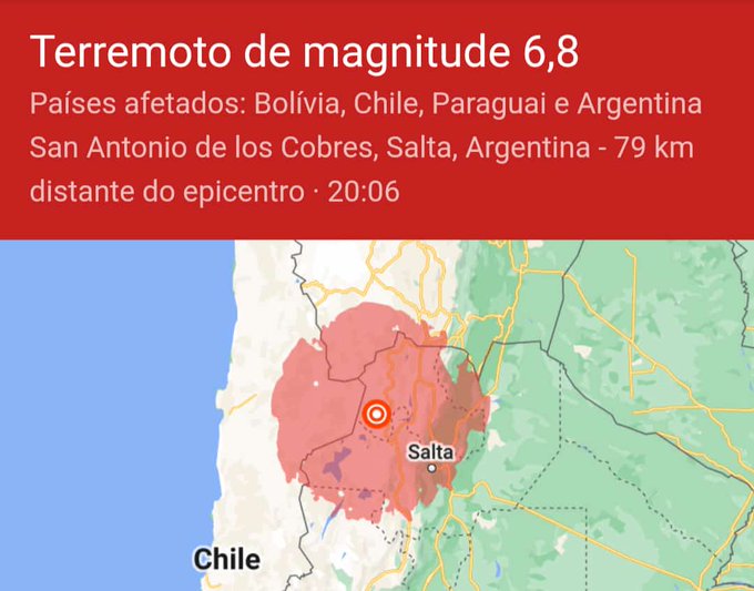 O Corpo de Bombeiros informou que não recebeu nenhum chamado para esse tipo de ocorrência. O terremoto, de forte intensidade, foi registrado a uma profundidade de 176 quilômetros na região de Jujuy, por volta das 20h, em área próxima à fronteira com o Chile e a Bolívia.